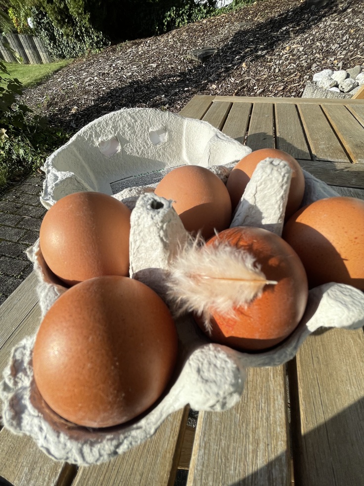 ブランド名は「アイフェルのたまご」。近所の鶏舎でパックしているのかも。「キケリキー🐓」(ドイツのニワトリはこう鳴く)。ちょっとツイてるような気がして、美味しくいただきました🥚🍳🐓