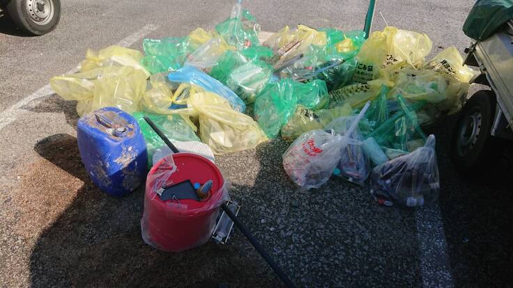 2019年11月28日からNPOとして、5人から30人位で活動を行なっています。コロナの影響で各自の判断でゴミ拾いや、各集落の応援など出掛けてます。キャンプ場の海、岩場をよく観察。