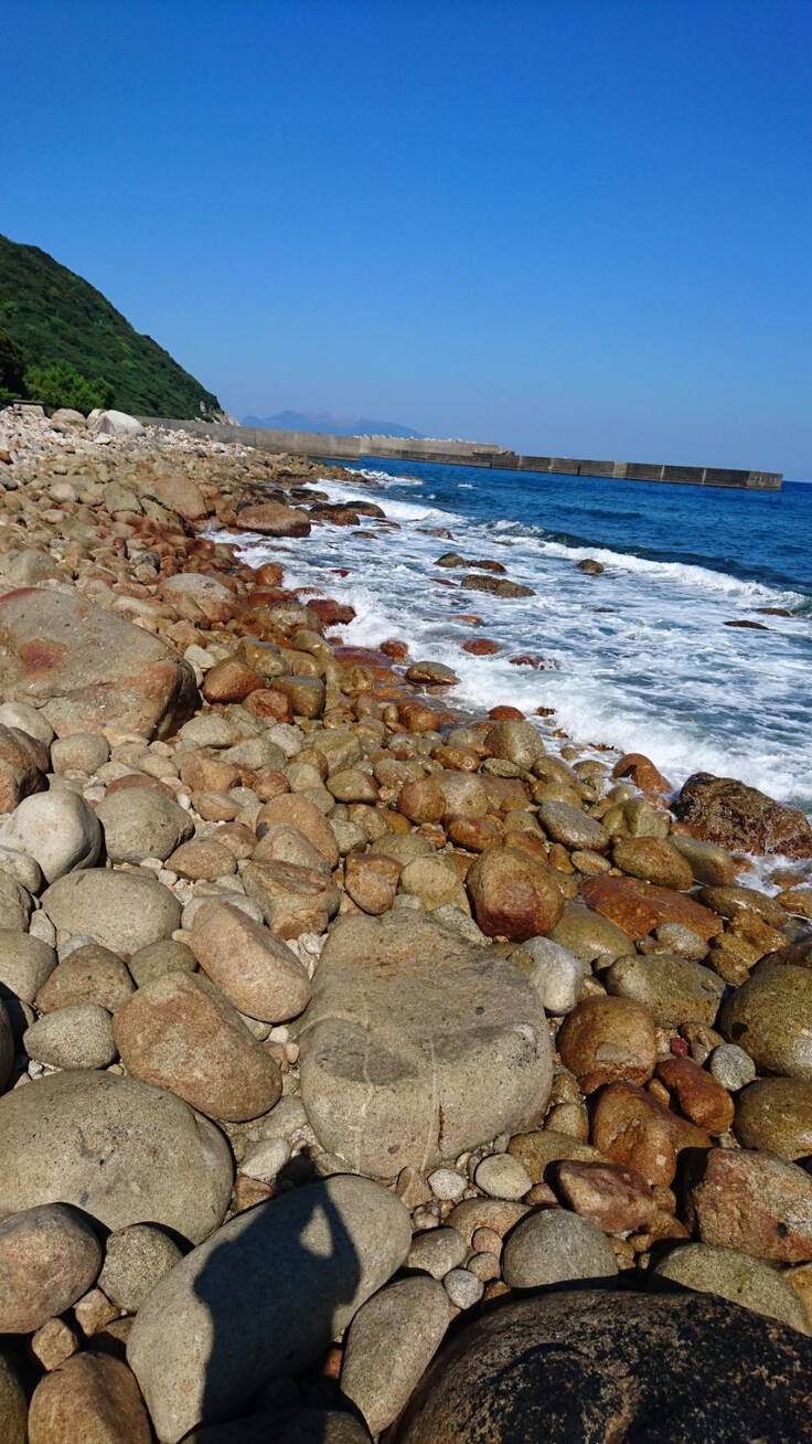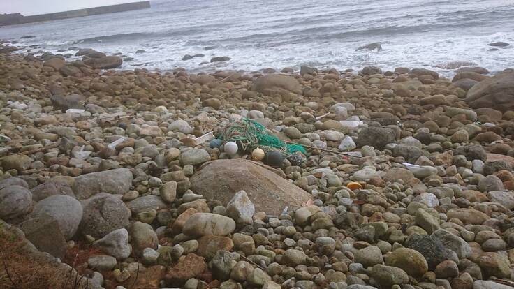私のキャンプ場(癒しの体験型キャンプ場)の前が海で岩場になっています。風向きで漁具やペットボトルやロープが沢山打ち上げられている。