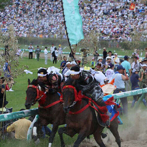 彼らは、馬術競技で活躍する傍ら、千余年の伝統を誇る国指定重要無形民俗文化財、「相馬野馬追」に参加しています。