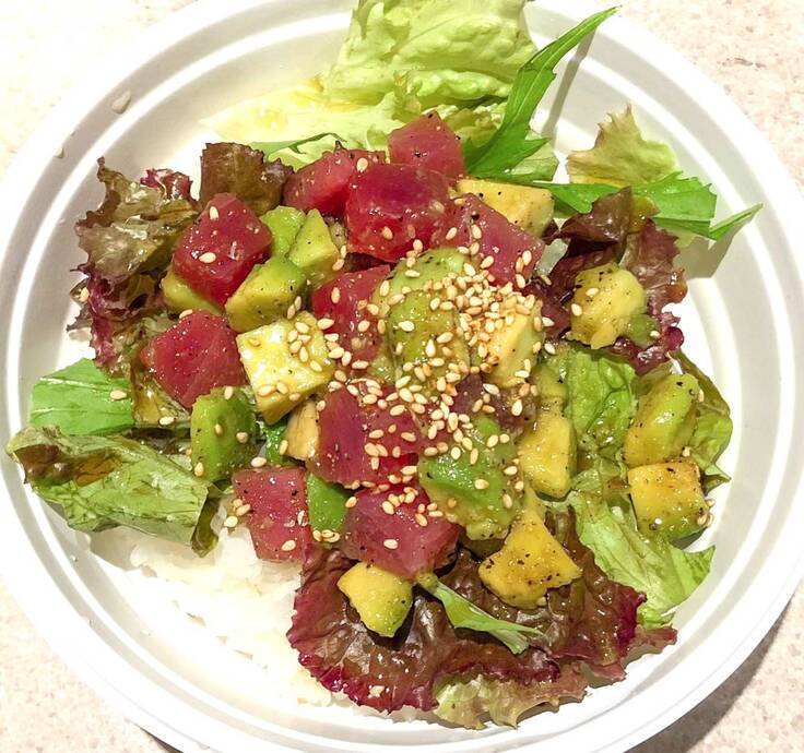 ロコモコ丼 ガーリックシュリンプ まぐろとアボカドのポキ丼