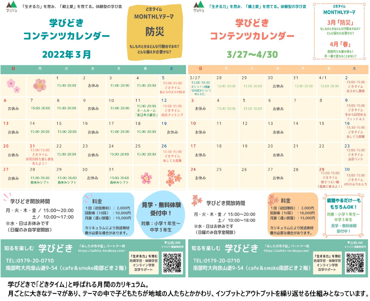 学びどきでは、月ごとに大テーマを決め、1カ月のカリキュラムを組みます。