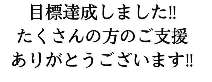 スタートから約1カ月、はじめは不安だったクラウドファンディングでしたが、本当にたくさんの方より、ご支援、SNSでのシェア、お声がけ、お手伝いをいただき目標を達成することができました。
