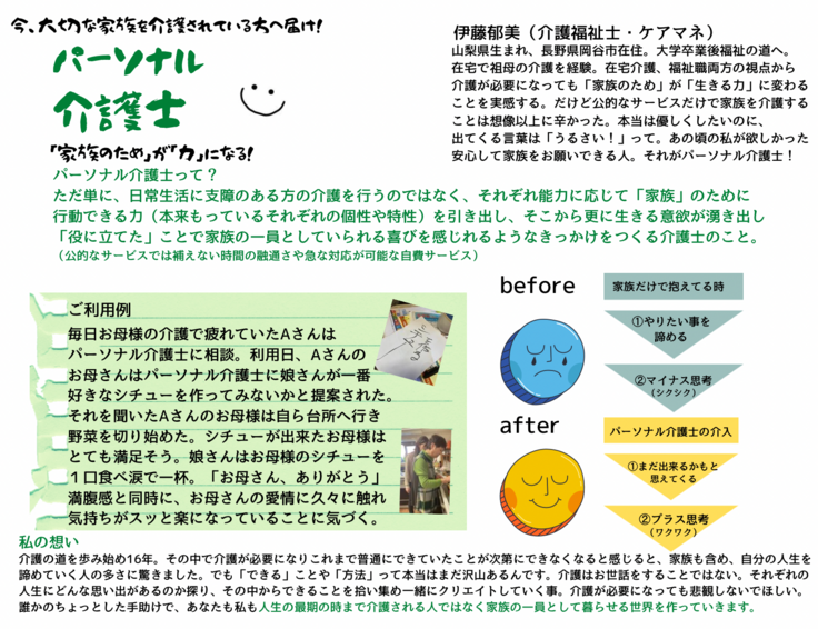 ▷伊藤郁美さんの事業計画書「パーソナル介護士」をお送りします。