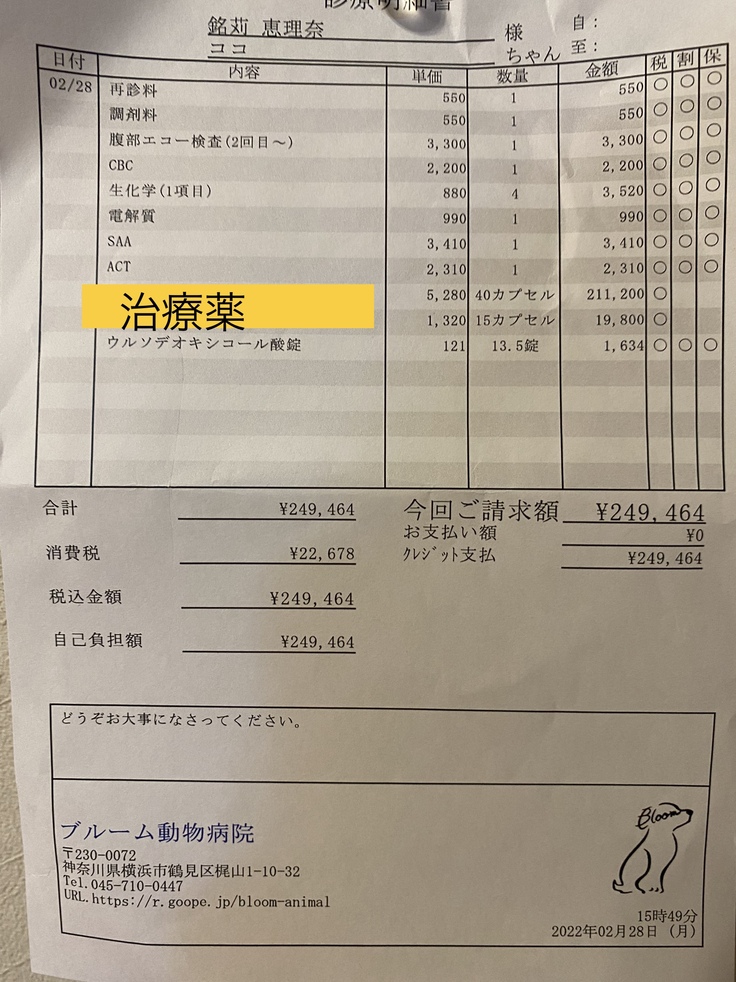 寛解に向けココの闘病生活は始まったばかりですが、皆様のご支援にお力を頂きながら頑張っていきます。