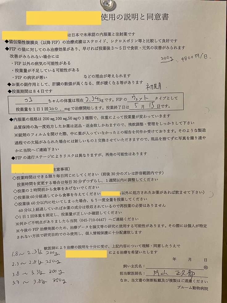 しかしどうしても諦めきれず病気のことを調べていくうちにFIP寛解の文字を目にしました。