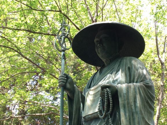 あたたかい日差しと青葉の紅葉からの木漏れ日。紫陽花の枝の間を抜けて行く風を感じていると、カサカサっとトカゲさんが顔を出してくれました。登り切った坂の上では大きなお大師様に出迎えていただき、いつも見守っていて下さるんだなとジ~ンとしました。