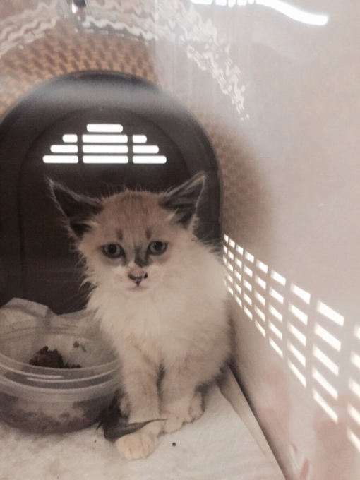 子猫は体調が急変することが多く、また、外にいる猫には寄生虫が必ずいます。適切な処置をしてもらうために現在入院中です。