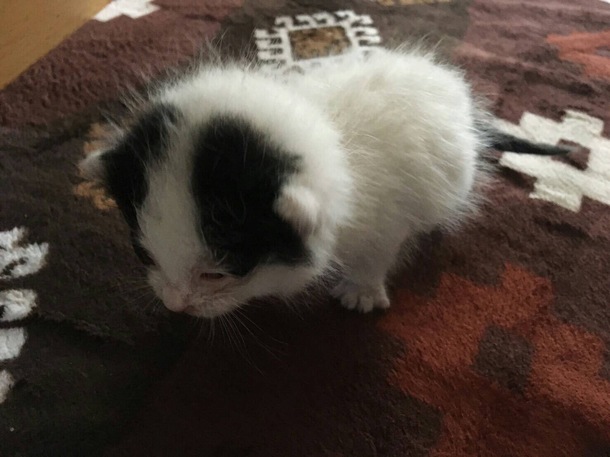 子猫は、目は開いてなく、鼻水で目と鼻の周りがグチャグチャです。