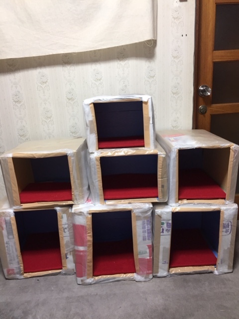 段ボールはスーパーでもらったので、大きさがまちまちです。
