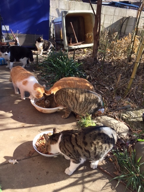 去年の11月から餌やりしている外ニャンズ7匹は、旧農家の納屋に寝泊まりしています。