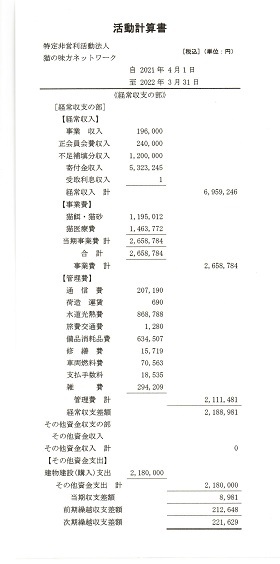 どうかこれからもNPO法人猫味方ネットワークを温かく見守っていただけますようお願い申し上げます。