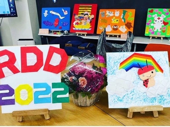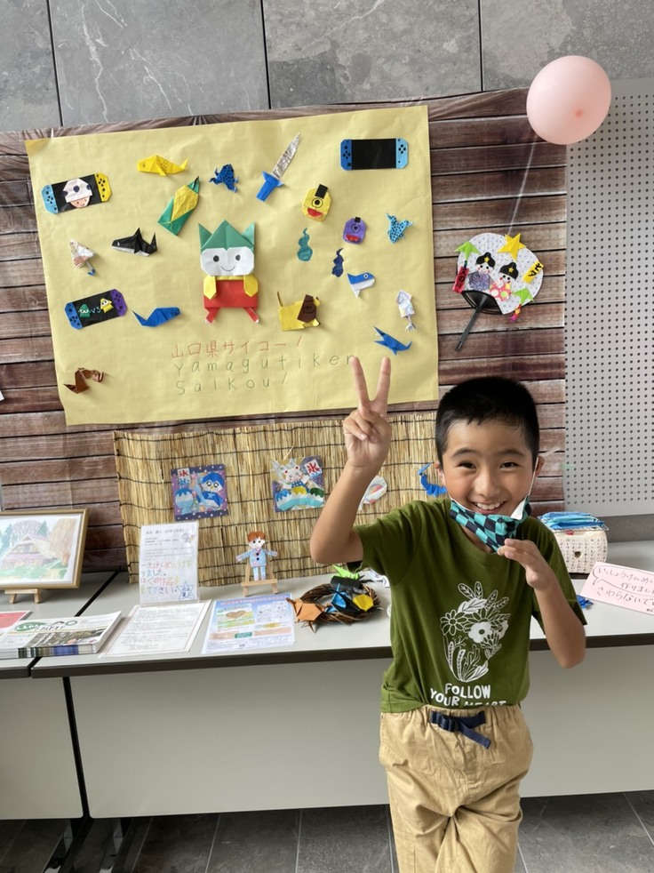 新型コロナウイルスで学校に行けない中で出会った折り紙の本を見て、折り紙が苦手だった息子が、小学三年生の夏に日本全国ご当地キャラクター折り紙を作りました。たたみ二畳分の大きさです。この作品を日本全国の図書館で展示したいと考えています。また、先天性心疾患、心臓病の子どもを守る会や内部障害、RDD世界希少・難治性疾患の日のイベントに参加させていただいた事で折り紙作品展示と一緒に病気の啓発をしたいと考えております。