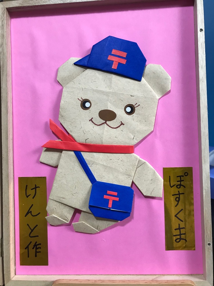 今回は郵便局キャラクターのぽすくまを製作し一緒に展示されています。
