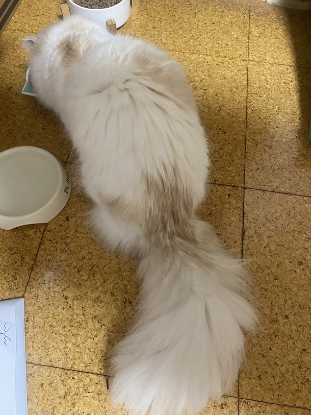ご飯食べてる時の後ろ姿がたまらなく可愛い✨基本的にいつもウエットフードとカリカリをどっちも出しています!
