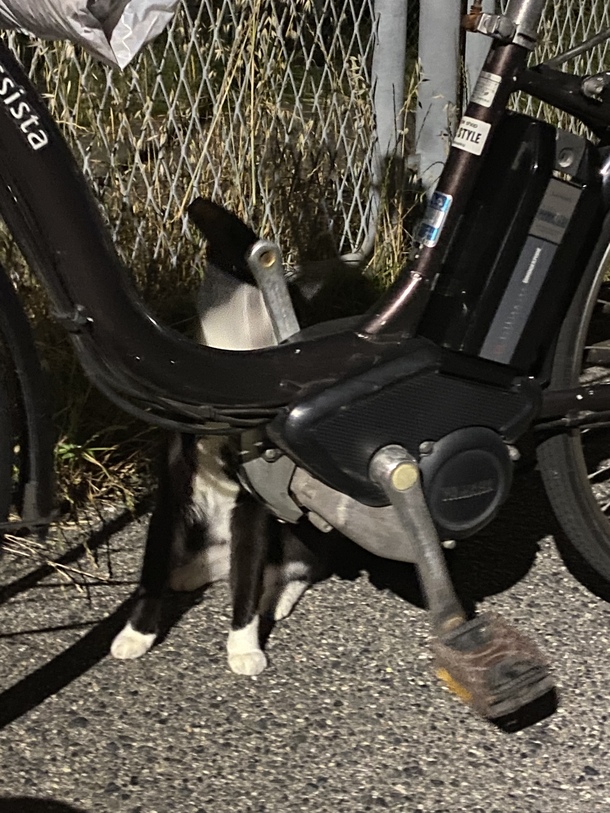 ※画像は、猫ちゃんが自転車のペダルで遊んでいます。もちろん自転車が倒れないように見ています。