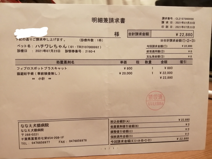 (飼い主名が消してあるのは一緒にお手伝いをしていた方の名前の為です)