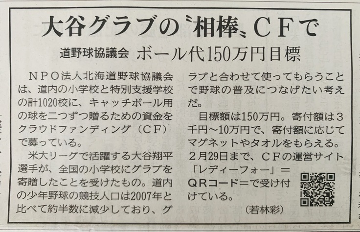 本日の北海道新聞にクラウドファンディングの記事が掲載されました。