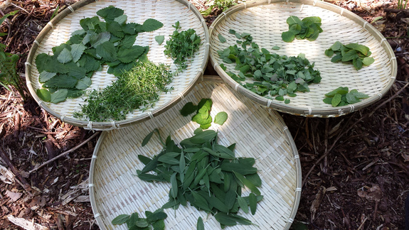 花が咲く頃が、一番油がのっているようなので、5種類のハーブを収穫しました。