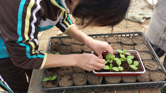 昨日は、種から育てたハーブの苗をポットに移し替える作業を行いました。