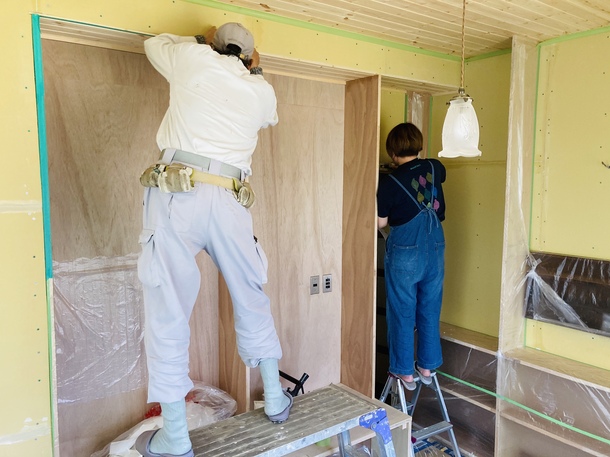 店舗の壁は一部、自分たちで珪藻土を塗る予定です。