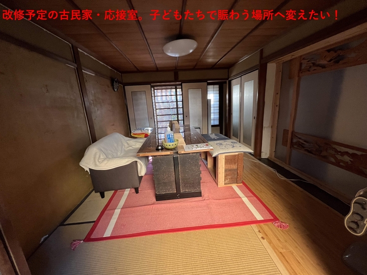 さて、今回、私たちは、古民家食堂と総合福祉施設を擁する古民家「てつや」の応接室とそこから続く中二階を改修し、子どもに焦点を宛てた交流スペース及びゲストハウスへの改修へとチャレンジしようと考えています。
