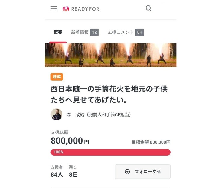 本日、皆様のご協力のおかげで第一目標の80万円を達成致しました。