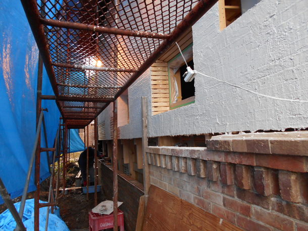 厨房の外壁の修理をボランティアみんなで始めました。