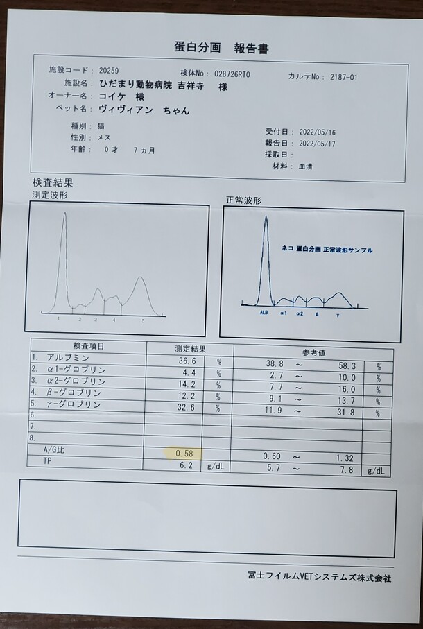 ただ、まだ若干A/G比が低いということが判明してしまい、再度外注検査を行う予定になりました。