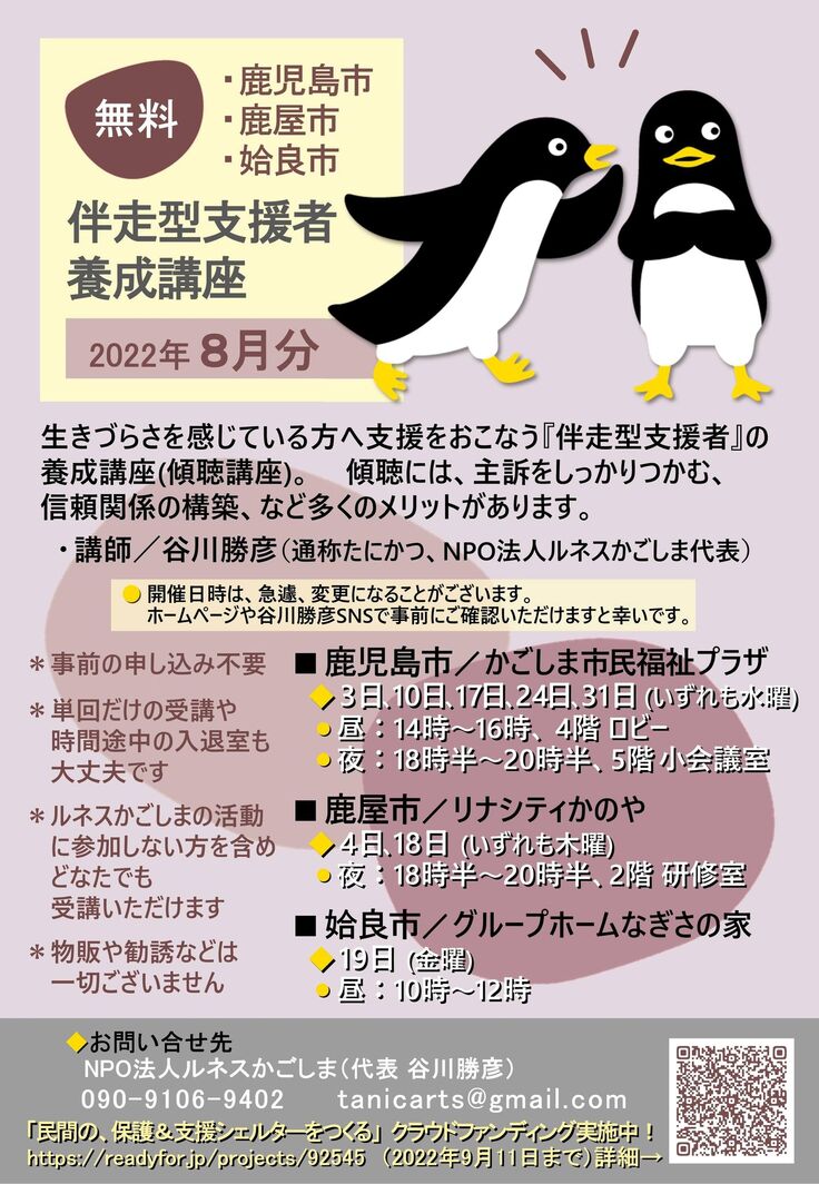 伴走型支援者養成講座も、鹿児島市、姶良市、鹿屋市であります。
