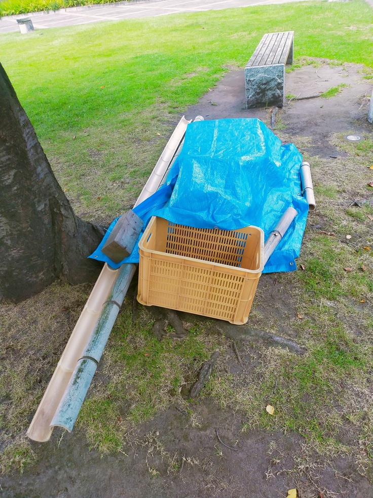 ひとんちの庭でそうめん流しをするので、排水のことを考えなければならず、現在はいったん子どもプールに貯める方式を採用しています。排水ホースで自動化したいところではあります。