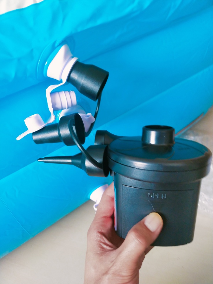 かつては、子どもプールをふくらますのに、足でシュコシュコやっていたので、電動ポンプが導入されてとても楽になりました。