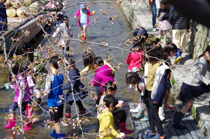 地域の方の努力で少しづつ昔の美しさが戻ってきた高瀬川に子どもたちの活動が加わり、ホタルが住む自然豊かな高瀬川になることを目指しています。