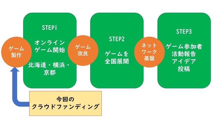 このオンラインゲームを北海道、横浜、京都の小学校や地域コミュニティ(児童館や子ども食堂)でテスト的に実施し、改良をして全国に展開する予定です。最終的には、このゲームに参加した子どもたちが話し合い、自分のアイデアを発表するネットワーク基盤を制作する計画になっています。