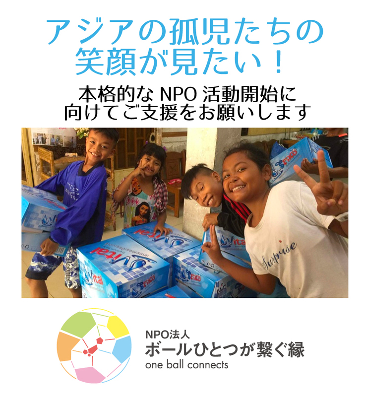 今回、NPO法人ボールひとつが繋ぐ縁の海外支援活動を知り、世界の子ども達がより良い人生を送れるように応援させて頂いております。