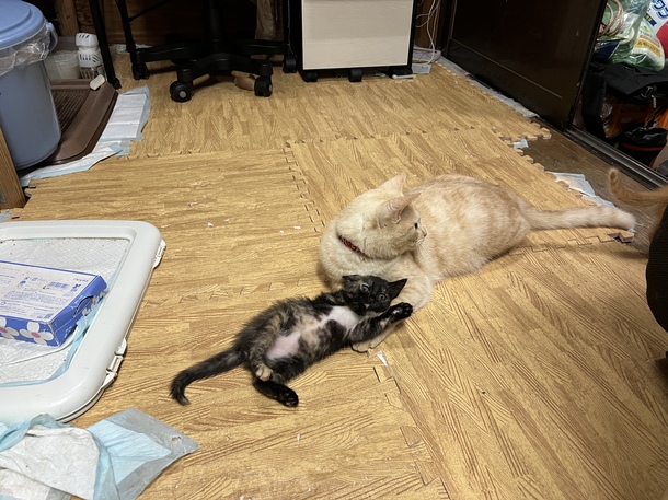 6/6(月)先輩猫とジャレる仔猫ちゃん