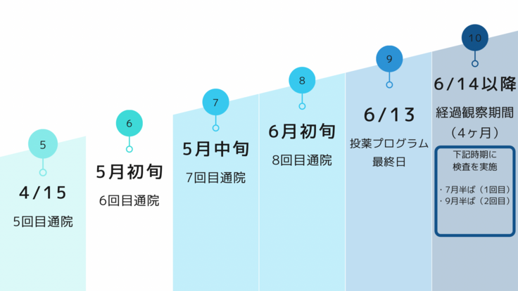 また、4/15(6回目通院)以降の医療費はあくまで概算であるため、治療完了時に目標金額以下になる可能性があります。