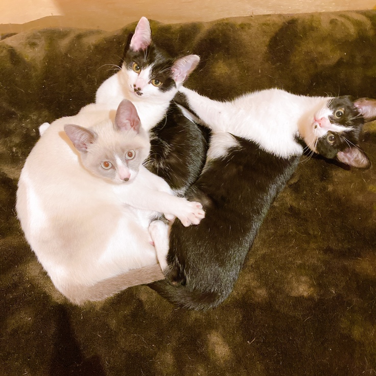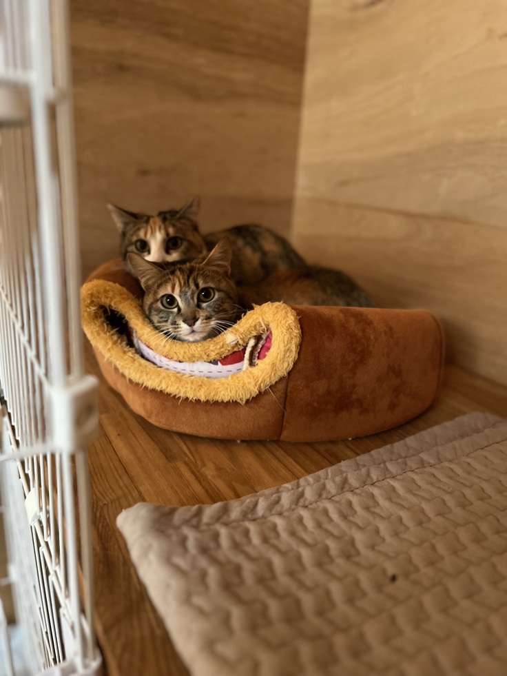 現在は飼っている6匹とは別に、近所で保護した生後5ヶ月の姉妹(生後1週間くらいの頃3匹保護し、1匹は里親さんが決まりました)と、コンビニで保護した2匹の成猫の姉妹を自宅の一室でお世話をしながら里親さんを探しています。