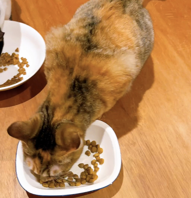 人馴れ訓練中のこの子はごはん中だけは触らせてくれます。