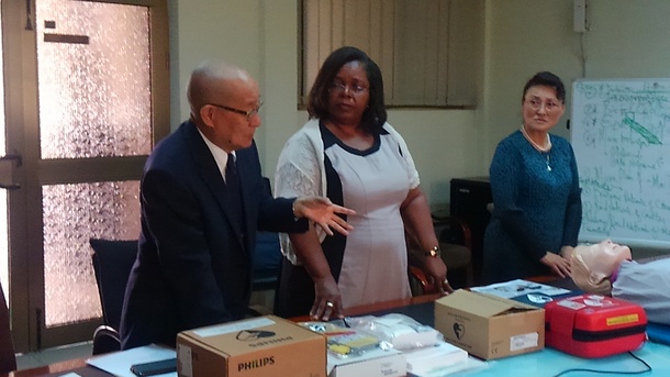 昨年6月、ガーナの政府機関である、ガーナヘルスサービス(GHS.日本の厚生労働省に匹敵)にHIROYA基金の第1号のAEDとトレーナー機器一式を寄贈しました。これは、ガーナヘルスサービスにとっても第1号のAEDとなりました。