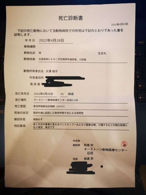 残念ながら猫ちゃんが亡くなってしまい、色んなことを思いましたが、最後まで治療させてあげただけでも喜んでくれてたらいいなあと今は思っています。