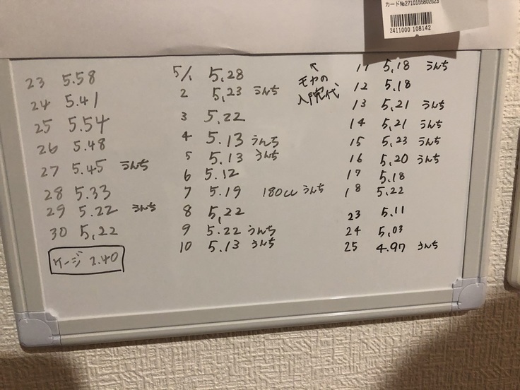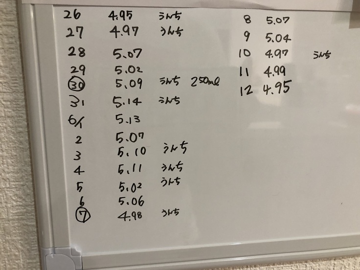 この頃から輸液量を250mlに変更し、肝臓炎を抑えるために、抗生剤の量を増加。