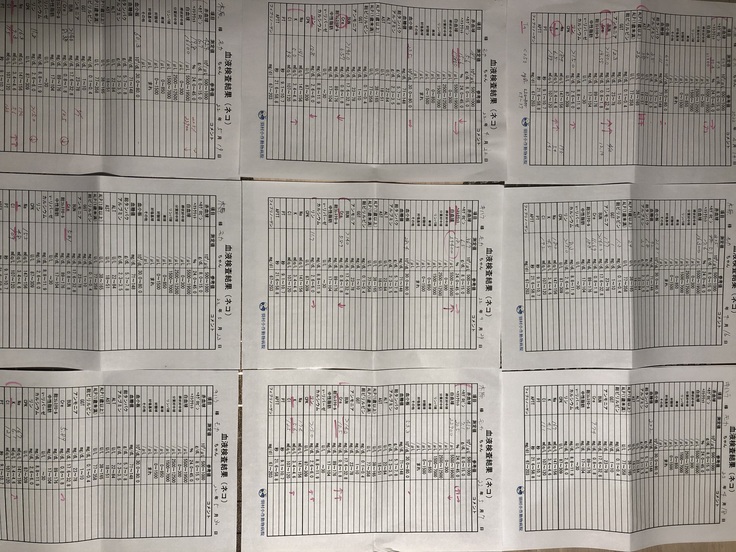 12日間に及ぶ入院により、モカちゃんの頑張りと病院の先生のお陰もあり、血液検査の結果はCREは6.57mg/dl、BUNは140mg/dl以上までに下がり、23日に無事退院となりました。