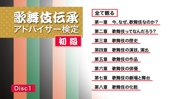 ・2017年1月にリリースを予定している「歌舞伎伝承初級アドバイザー検定」セット(DVDセット5枚)