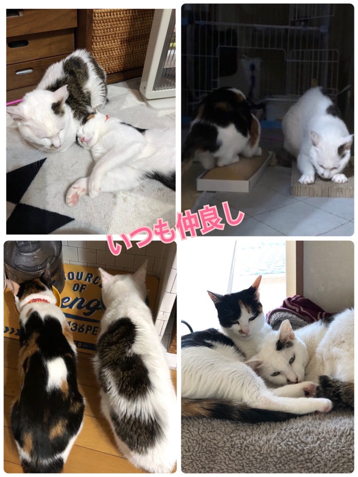 昨年の12月、スタッフの方に、白太郎君はと声をかけたところ、スタッフの方々からコダマのように、「白太郎、白太郎」と聞こえ、どうしたんだろうと思っていました。後で伺うと、子猫には目がいくが、大人の猫はなかなかご縁がなく、白太郎と名指しで来られたのにびっくりしてしまったそうです。「白太郎は穏やかで、先住さんがいたとしても、うまくやっていけますよ」と1月4日に家に迎えたのです。白太郎は、本当に穏やかで、お転婆娘のミイちゃんの度重なるパンチにも手を出しません。ミイちゃんが遊び疲れて寝てしまうと、そのそばでじぃと見守ってくれる優しい白太郎です。