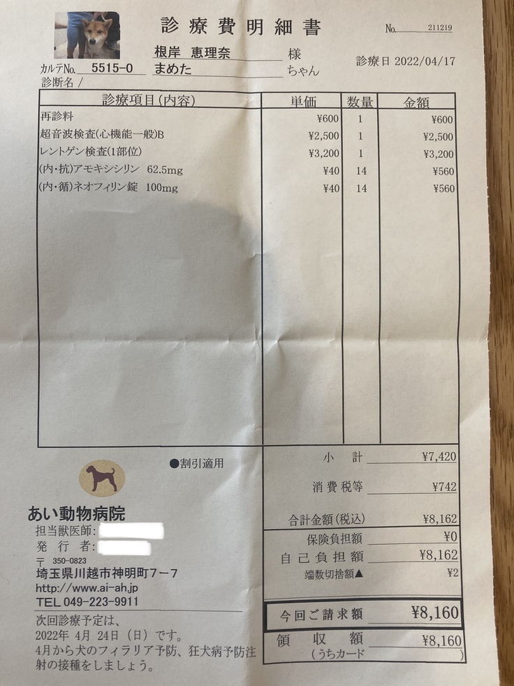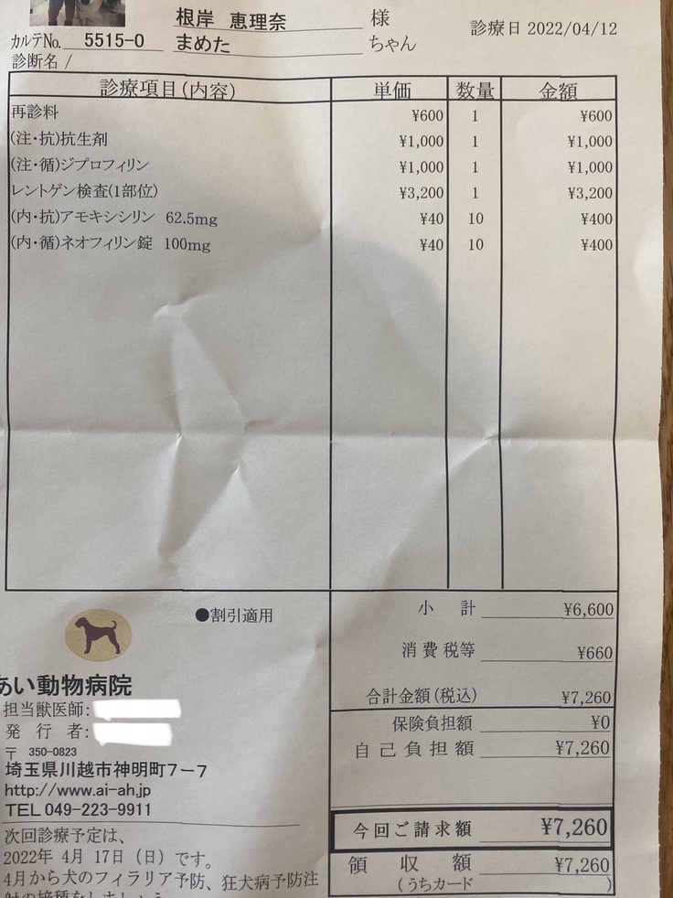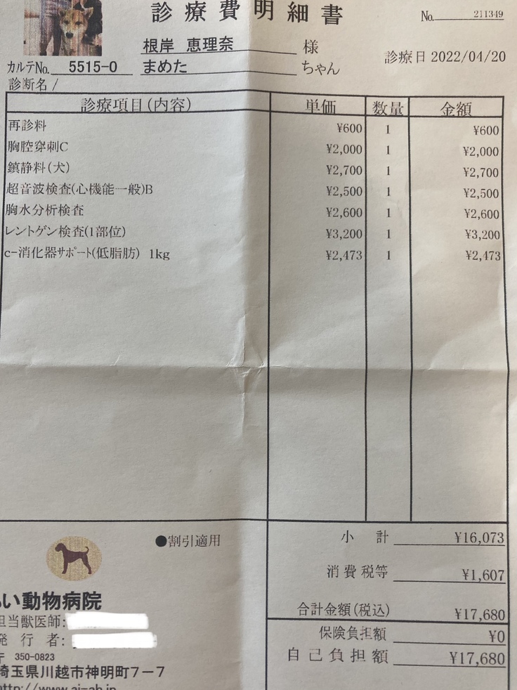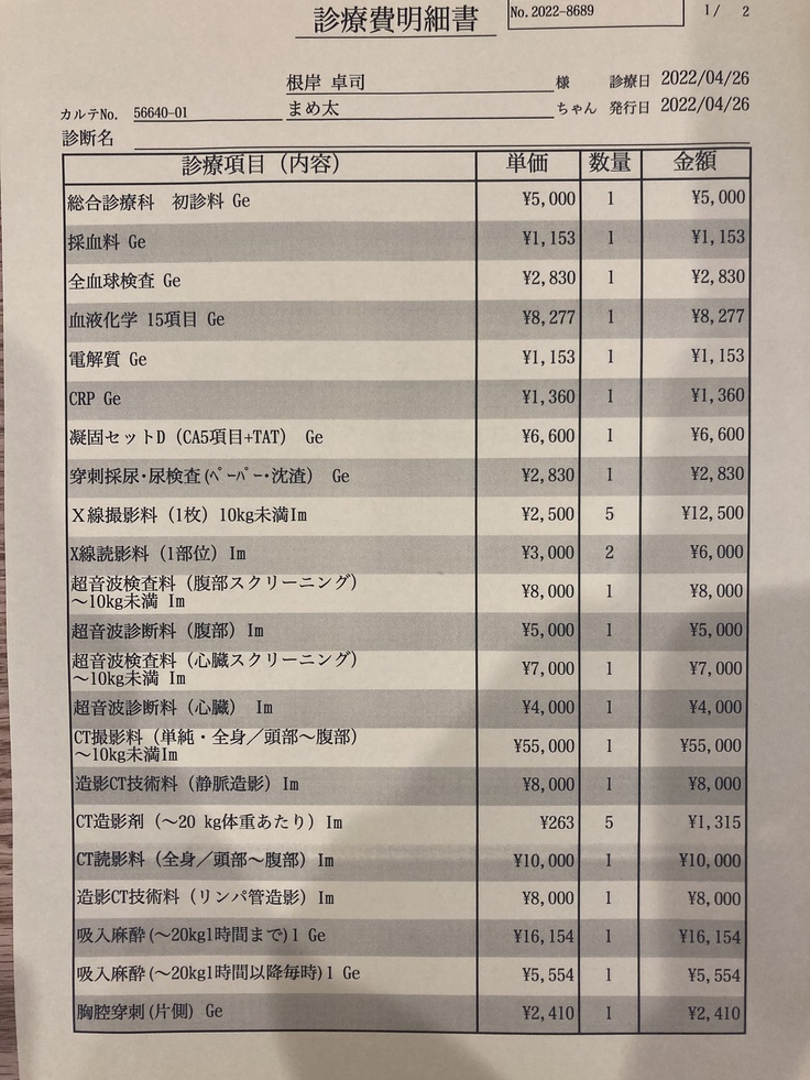 今までまめ太の治療や検査にかかった金額は、大変お恥ずかしながら、現在わが家の生活にとって大きな出費となっているのが現状です。
