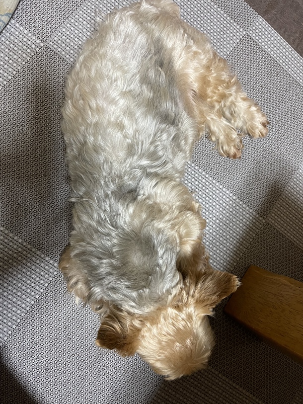 暑さでハァハァ息が上がるので寝ている間にハサミで少しずつ切っていってます✂️(バリカンだと興奮してしまうので‥)