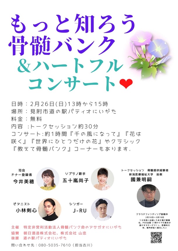 ぜひ骨髄バンクの事を知れるトークセッションと素敵✨な音楽をお楽しみください♪