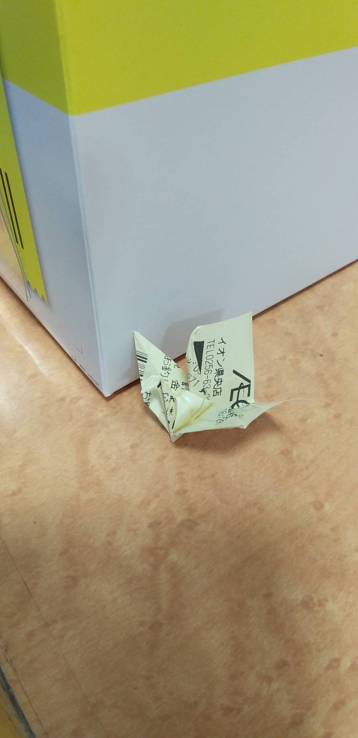 写真はAEONで行われるイエローレシートキャンペーン(レシートの1%が、ボランティア団体の活動に役立たれる)の際、レシートで折鶴が作られていました。素敵✨ですね。