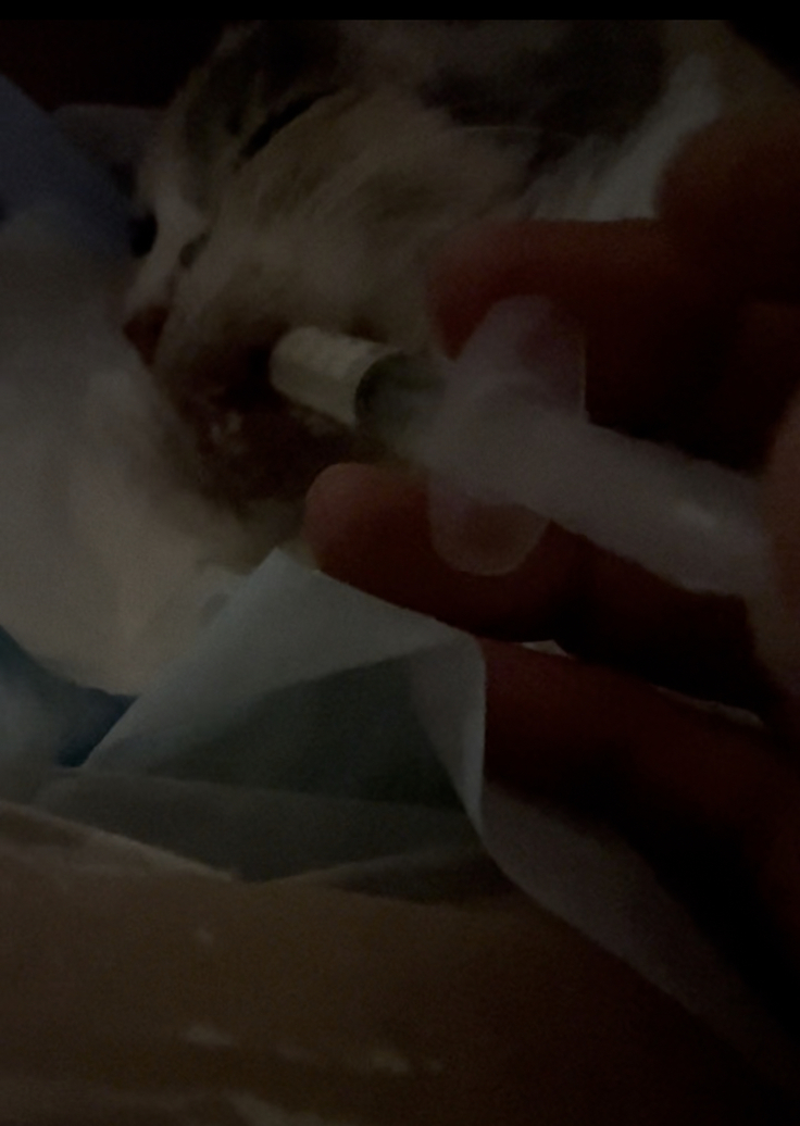 【12月初旬 シリンジでなんとかミルクを飲む凛】